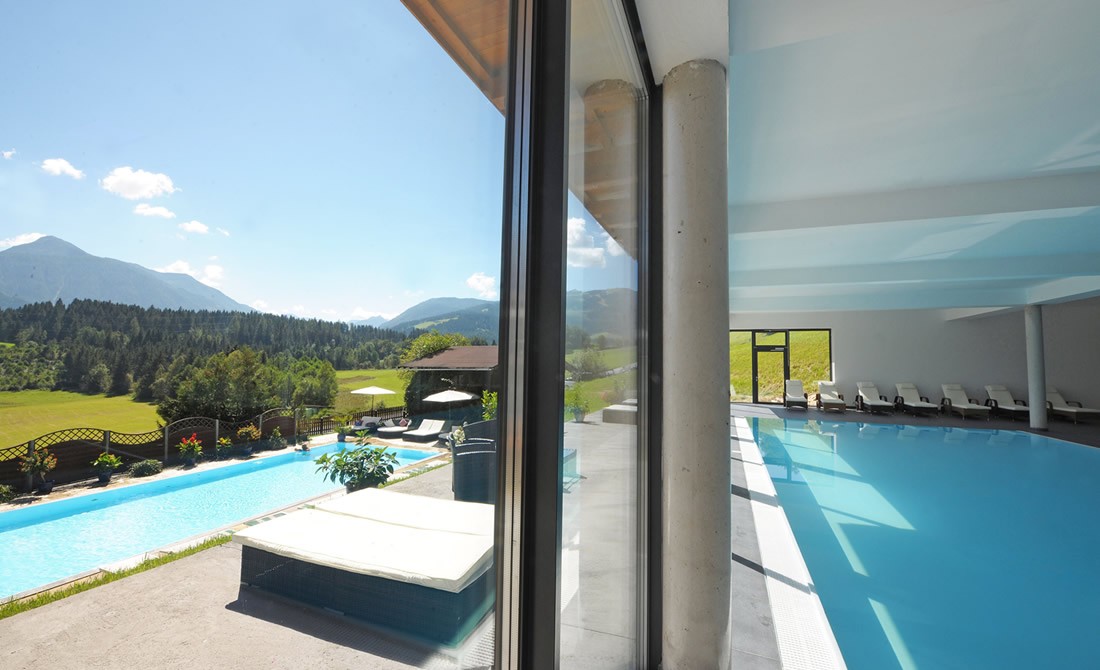 Das absolute Highlight in unserem Aparthotel ist unser In- und Outdoor-Pool. Das solarbeheizte Freischimmbad mit der Liegewiese und einem gemütlichen Lounge-Bereich sorgt für Erfrischung an heißen Sommertagen. In unserem Panorama-Hallenbad mit traumhaftem Blick auf die Salzburger Berge können Sie es sich so richtig gut gehen lassen, entspannen und Kraft tanken.